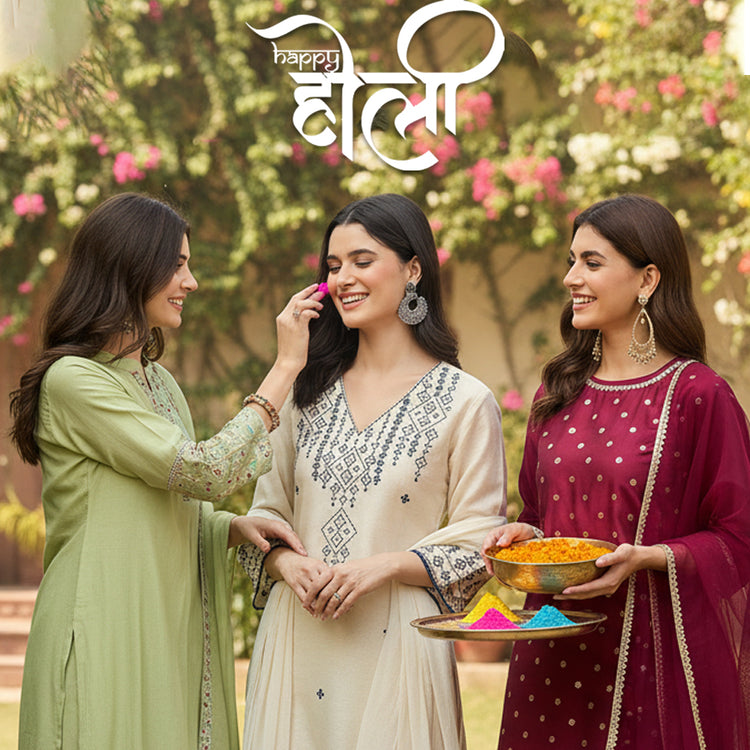 Silk Blend Round Neck Kurta, Pant and Dupatta Set