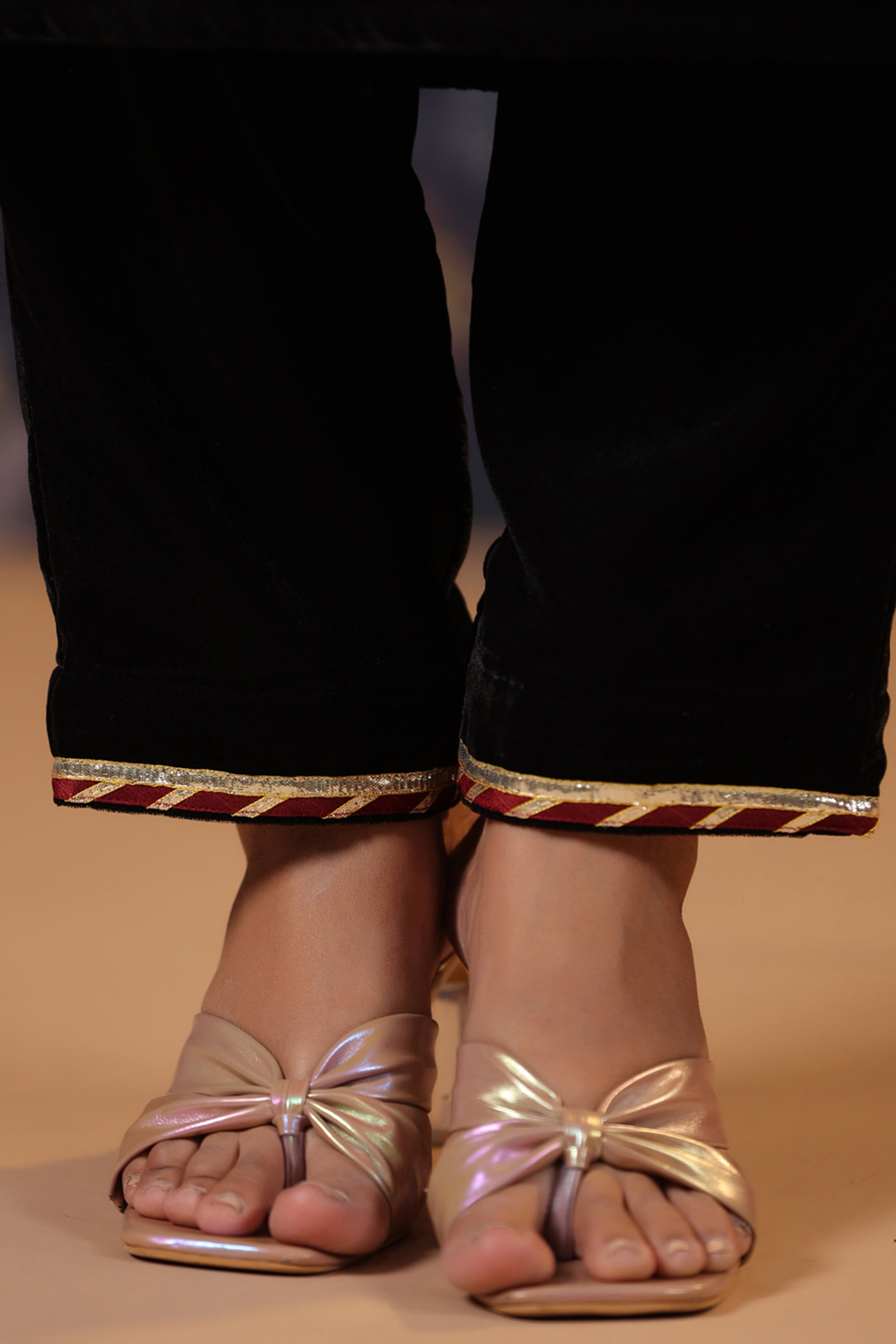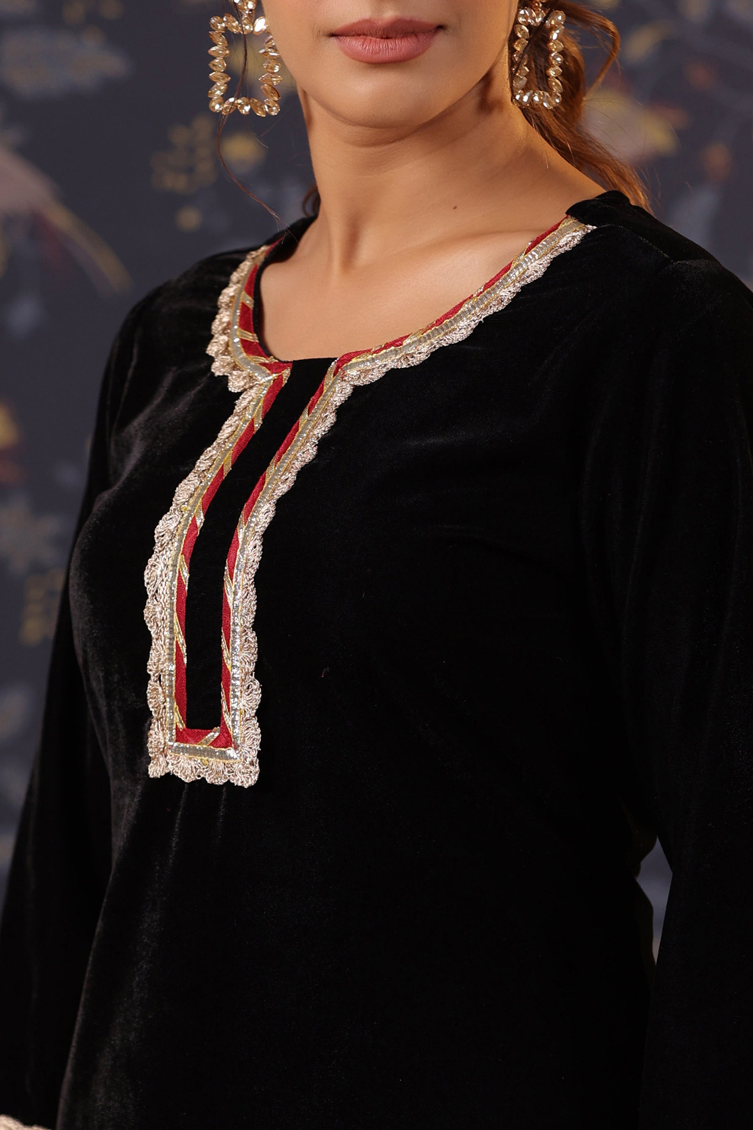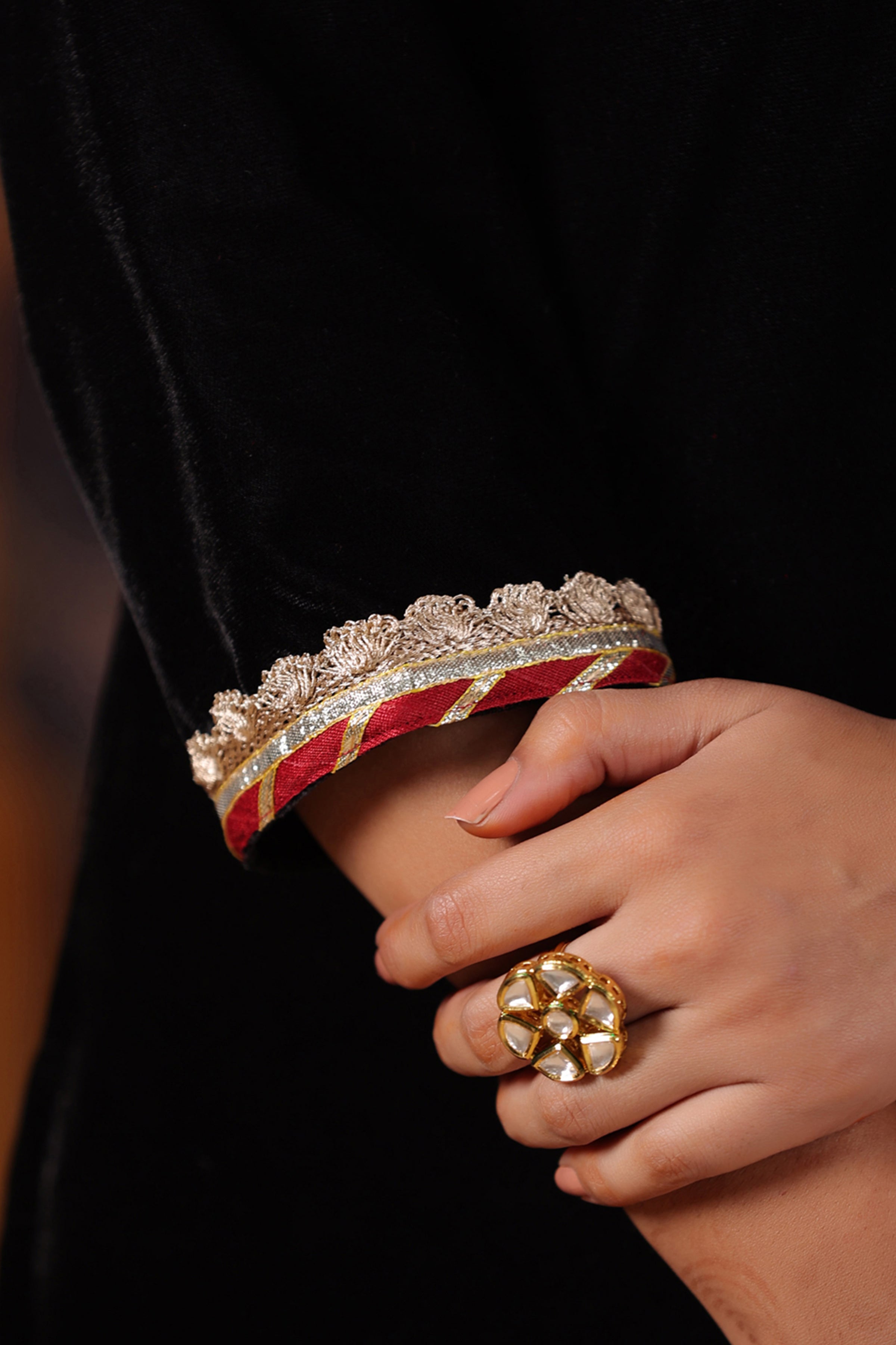 Black Velvet Kurta with Pant & Red Net Dupatta