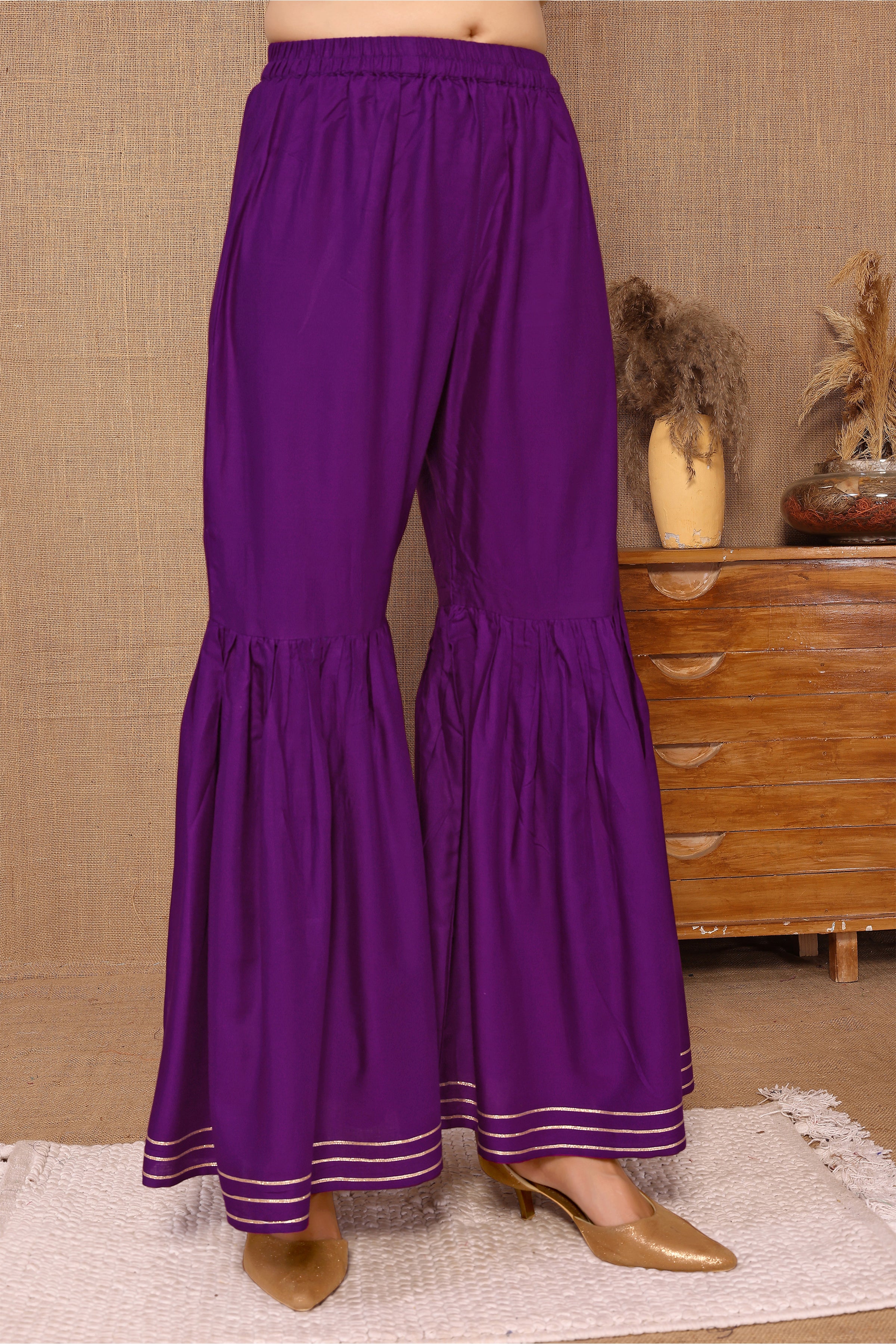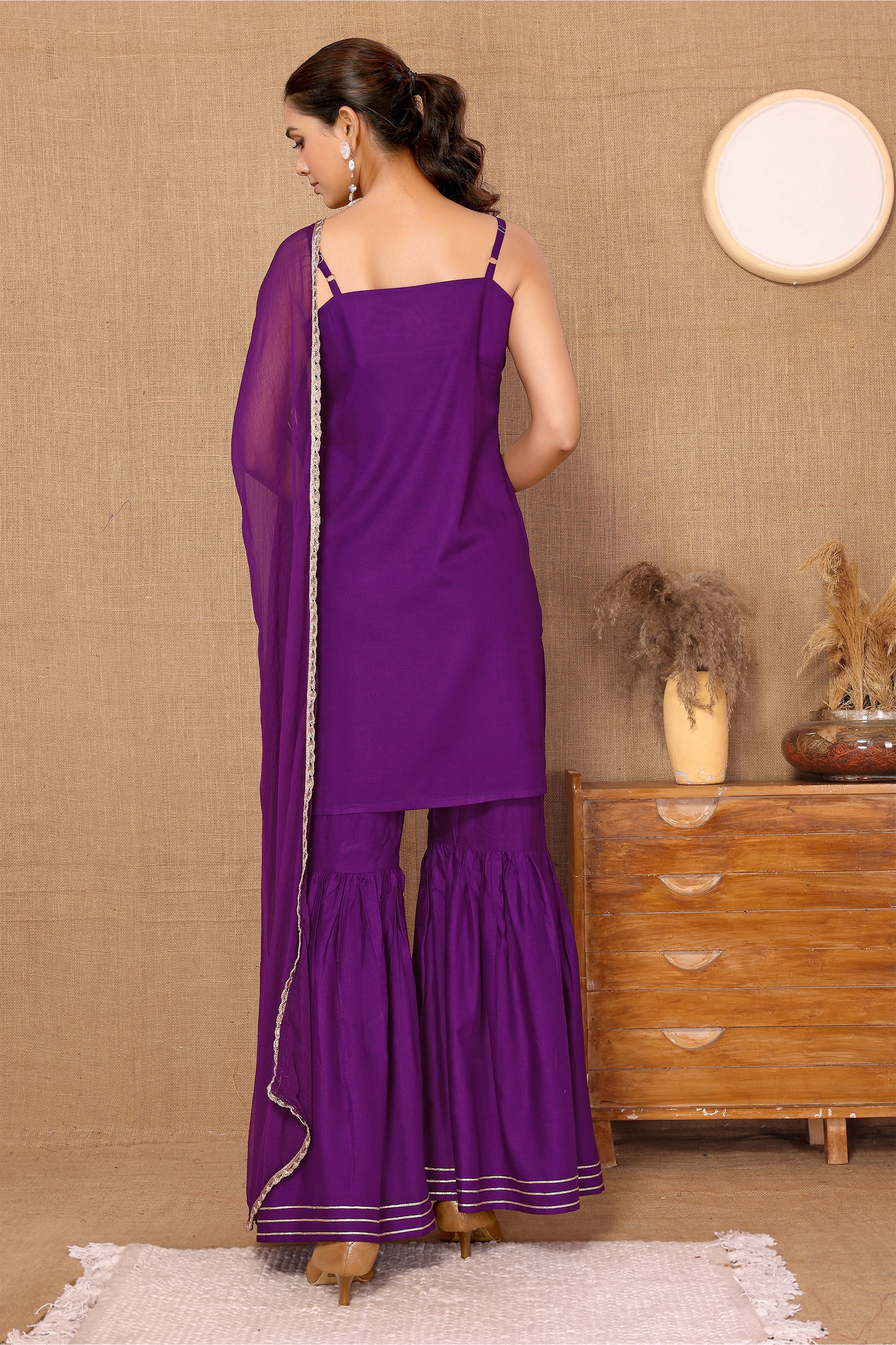 Purple Bandhani Foil Printed Kurta, Sharara, & Dupatta Set