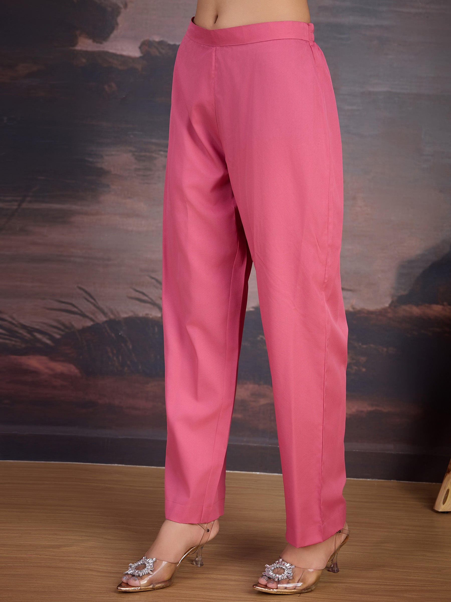 Pink Chanderi Cotton Silk Kurta, Pant, and Net Dupatta Set; comes with Separate Inner.