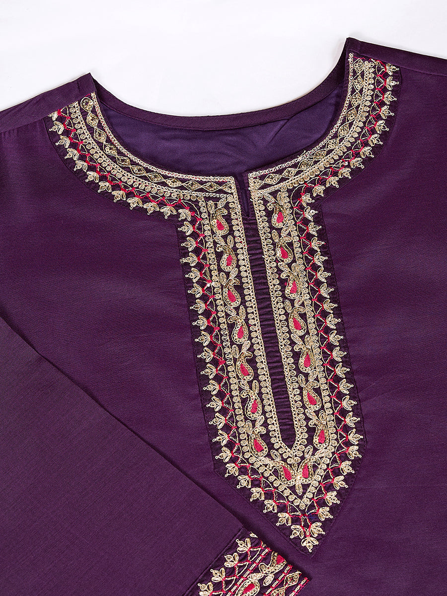 Celebrate timeless elegance with the Embroidered Silk Blend Kurta Set, a versatile outfit crafted for festive gatherings, weddings, and traditional occasions. This three-piece set seamlessly blends luxurious fabrics and intricate detailing to deliver a refined ethnic look.