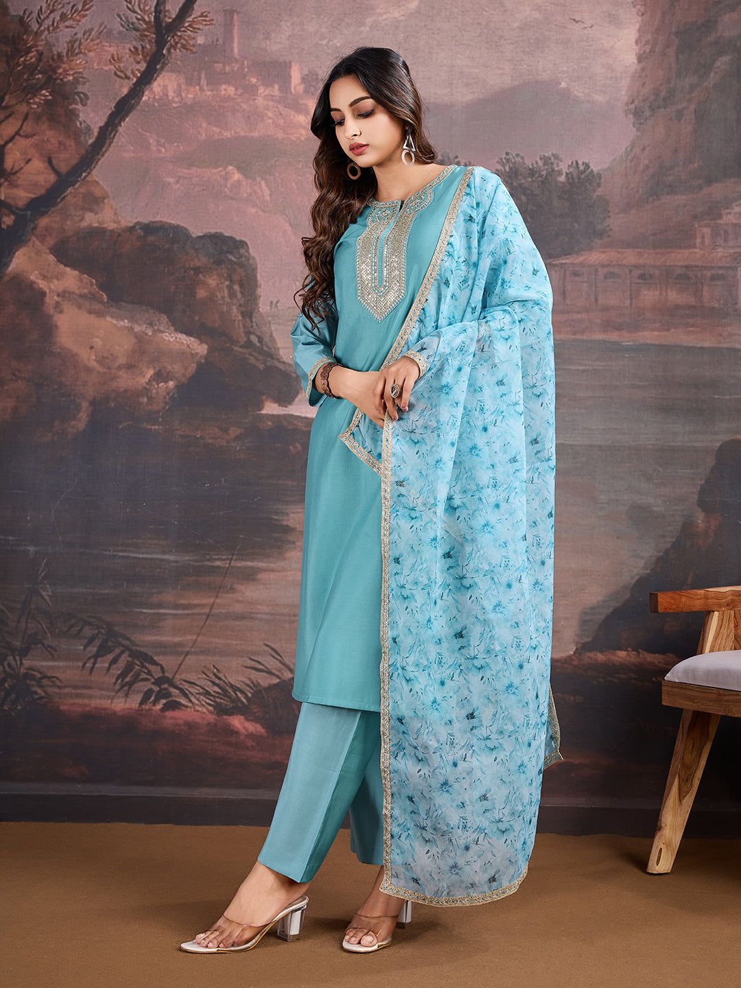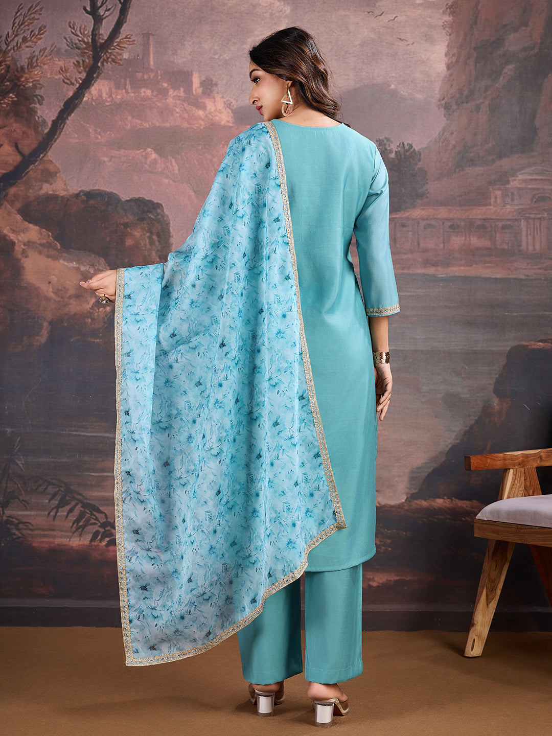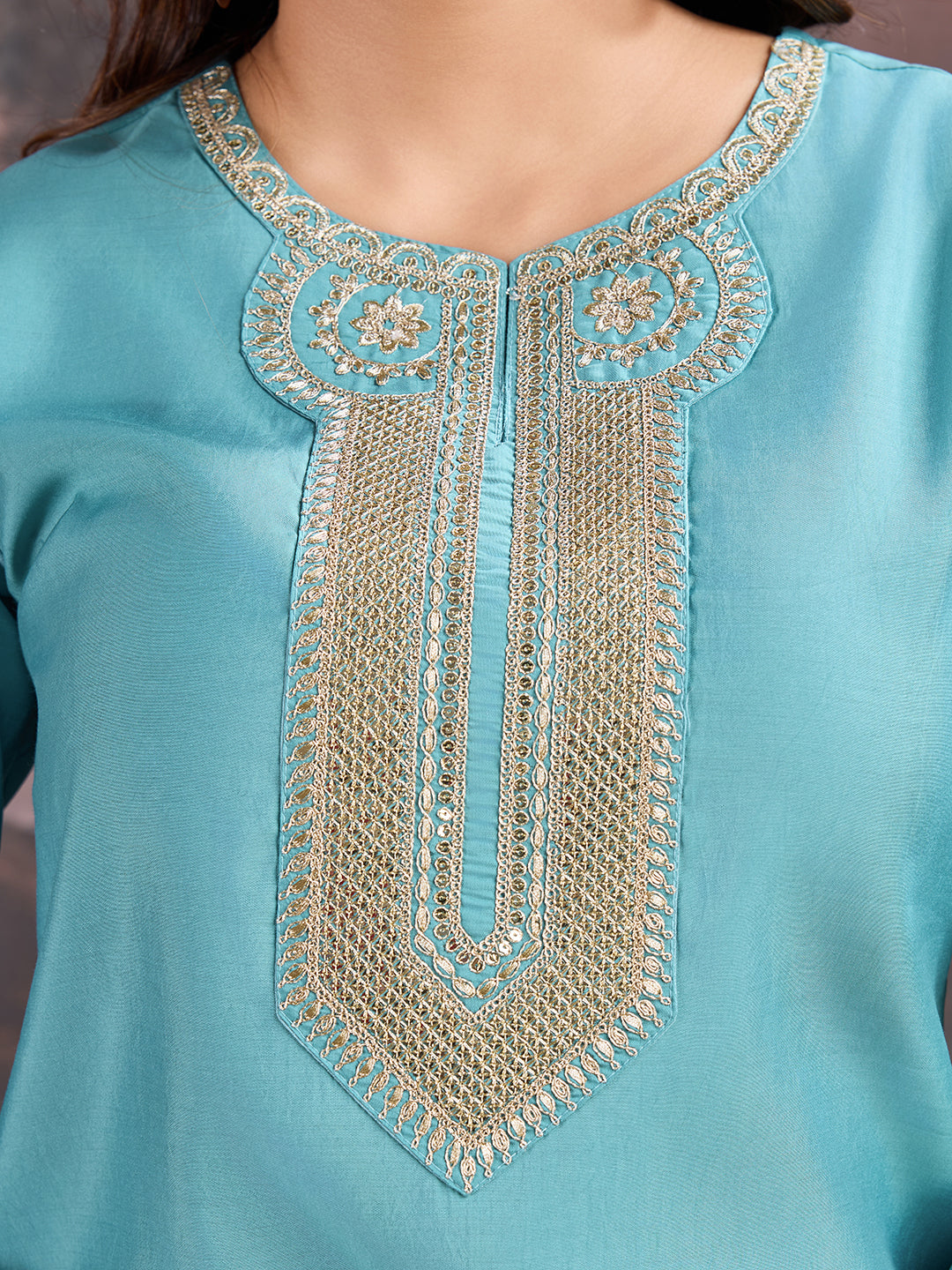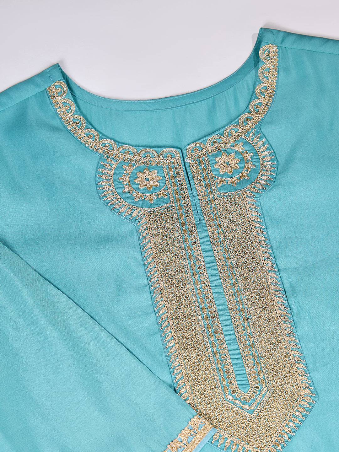 Elevate your festive wardrobe with the Embroidered Silk Blend Kurta Set, an elegant ensemble crafted for special occasions. This three-piece outfit blends luxurious fabric, intricate detailing, and modern aesthetics to create a versatile ethnic wear option.