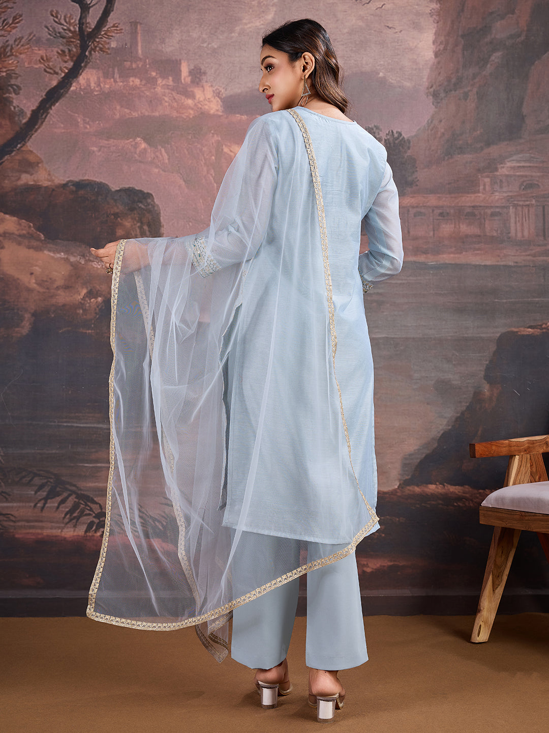 Jacquard Chanderi Cotton Silk Kurta, Pant and Dupatta Set