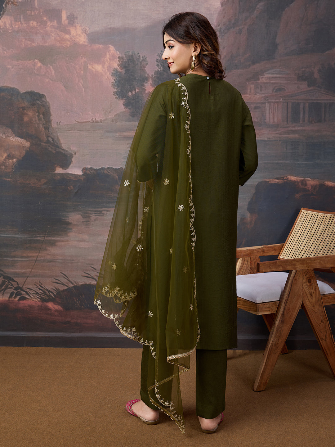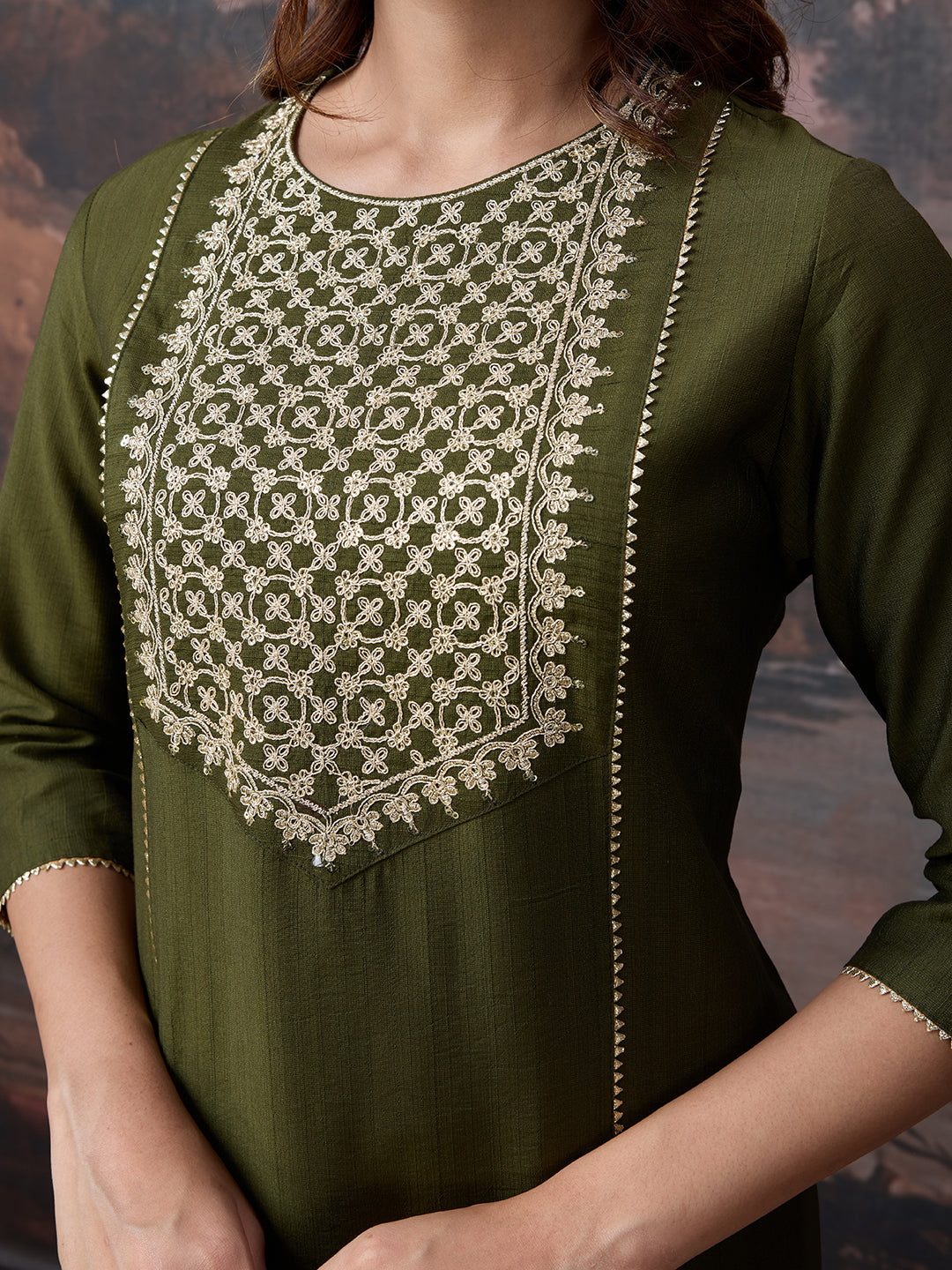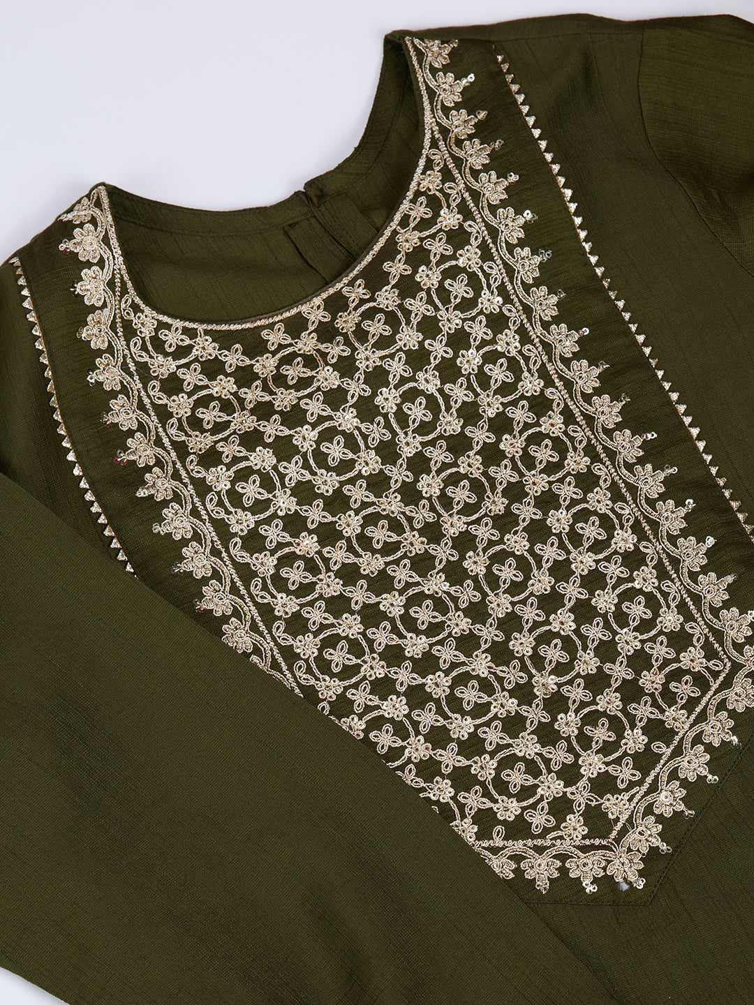 Embrace opulence with this Silk Blend Embroidered Round Neck Kurta Set, a perfect choice for festive celebrations, wedding functions, and grand occasions. This ensemble combines the luxurious feel of silk blend with delicate craftsmanship to create a statement outfit.