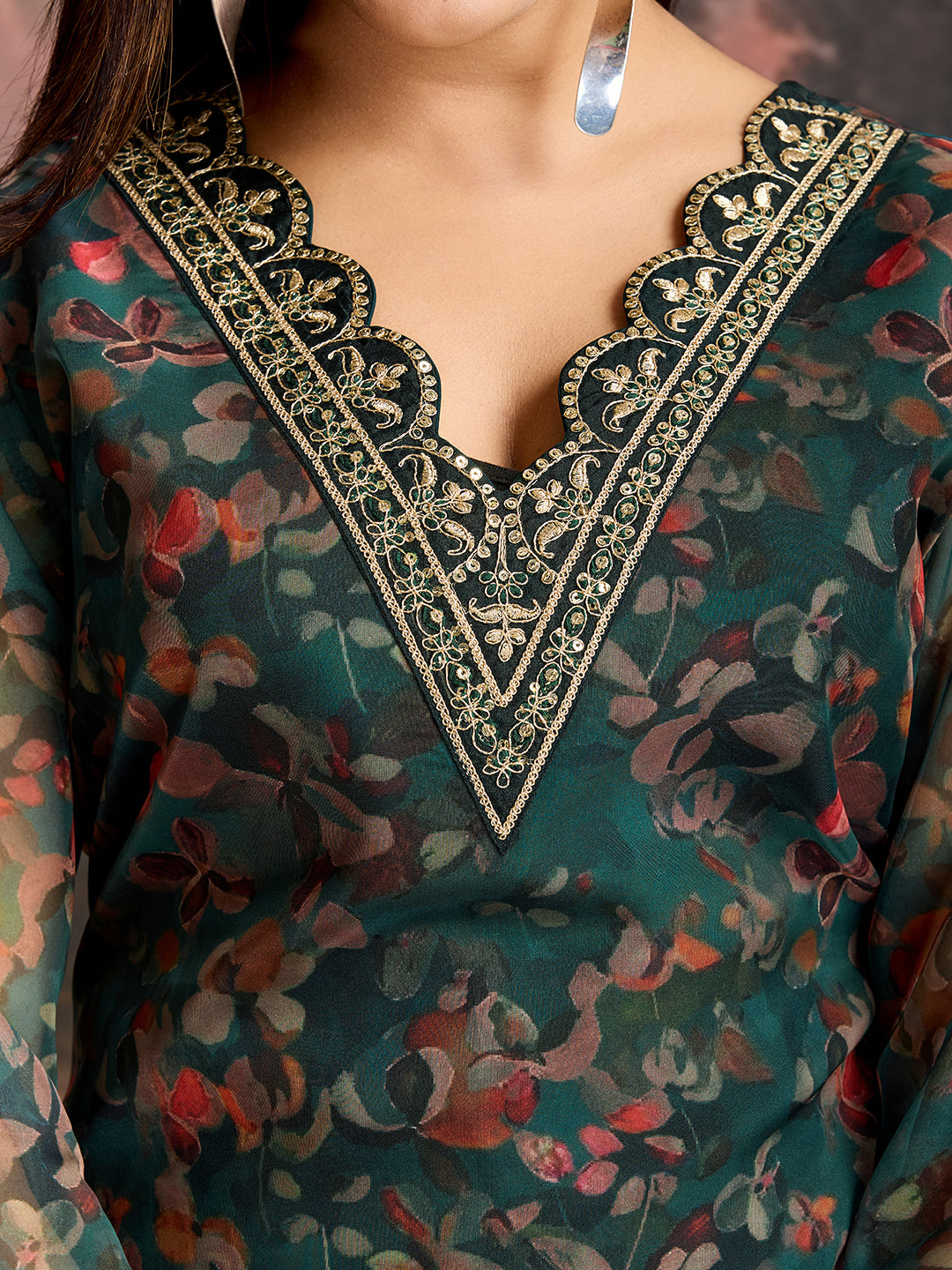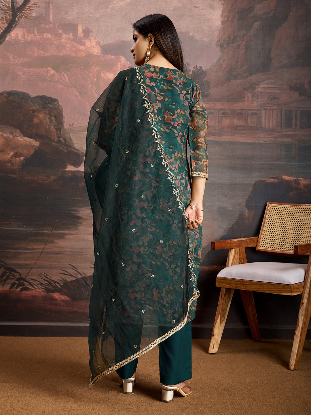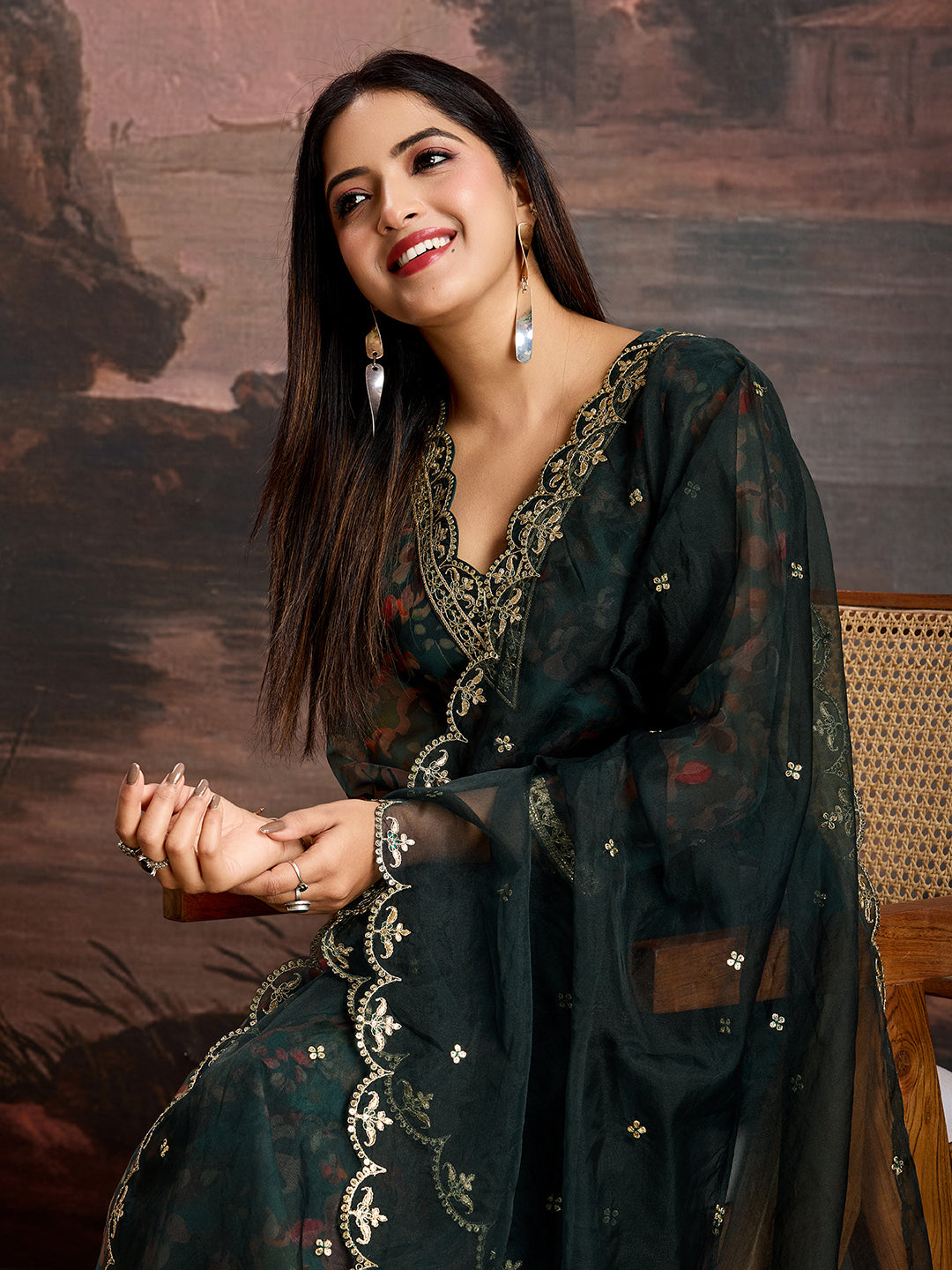 This exquisite Organza Floral Printed Kurta Set is a perfect blend of elegance and contemporary charm. The kurta, crafted from lightweight organza fabric, features beautiful floral prints, giving it a delicate and feminine touch. Paired with luxurious silk crepe pants for a smooth and flattering fit, this outfit is both stylish and comfortable. The ensemble is completed with an embroidered net dupatta, adding a touch of sophistication and grace. Perfect for festive occasions, weddings, and special gatherings, this set ensures a timeless, ethereal look.