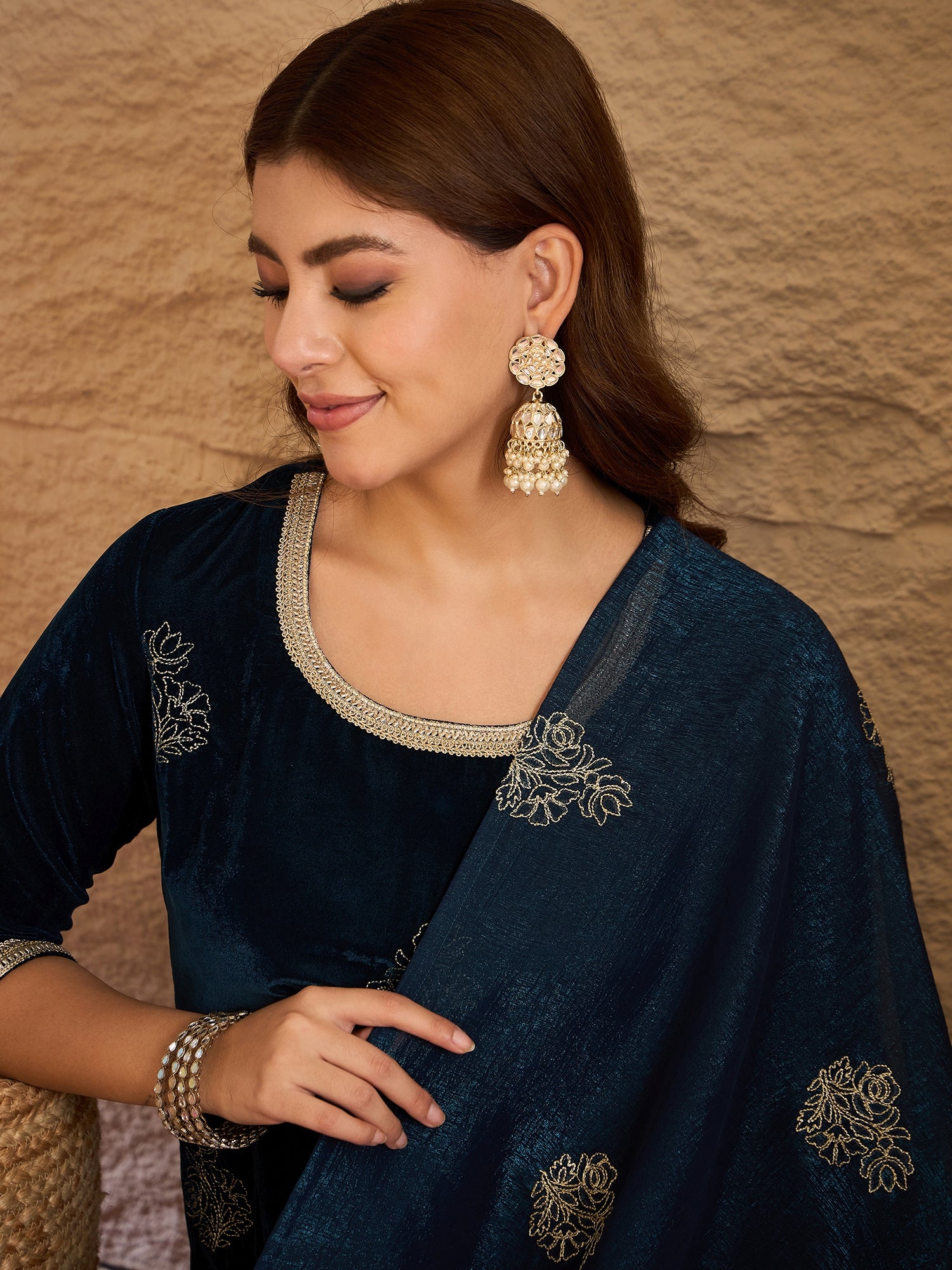 • Styling : Complements pearl jewelry, chandbalis, and embellished juttis