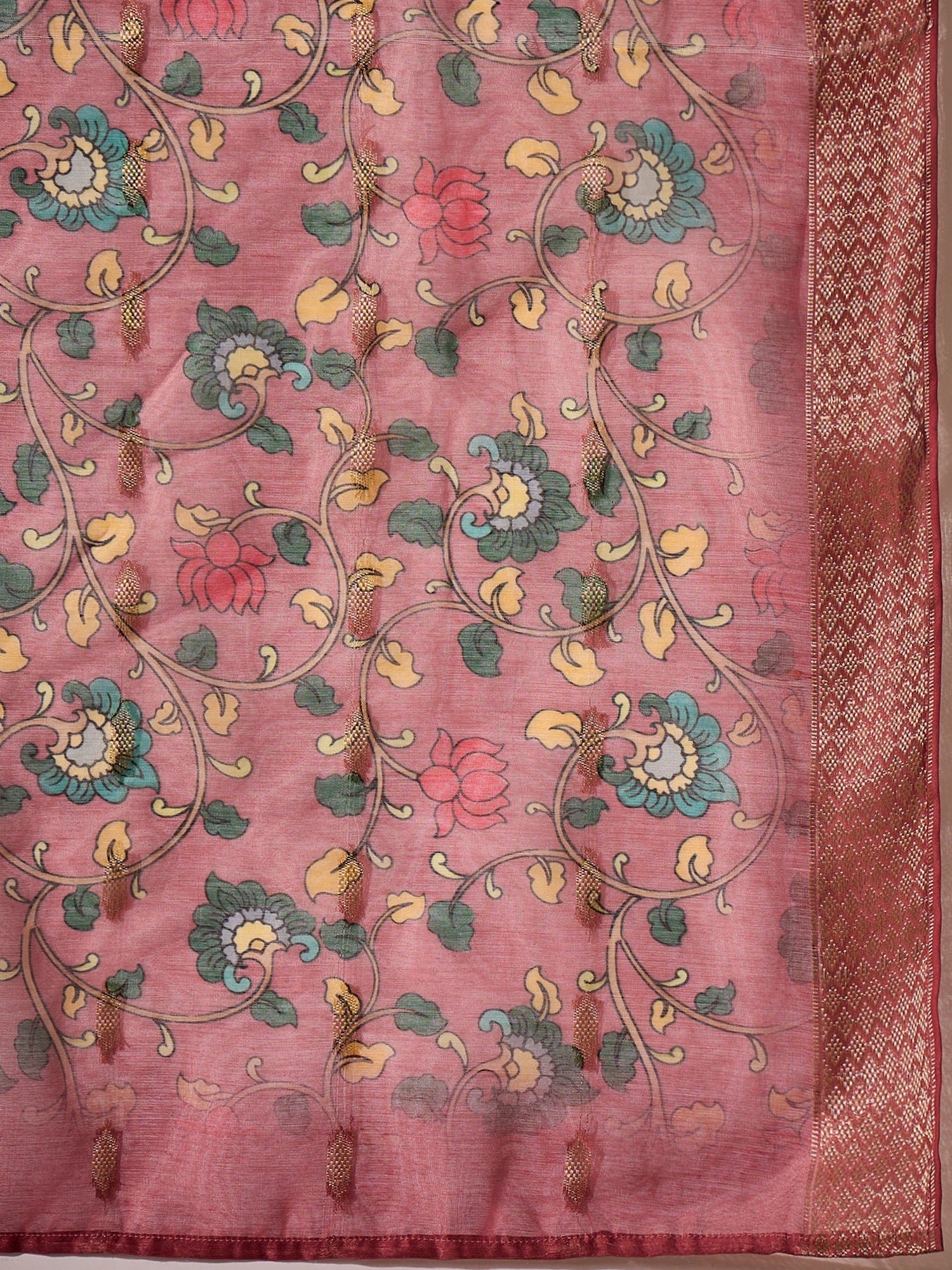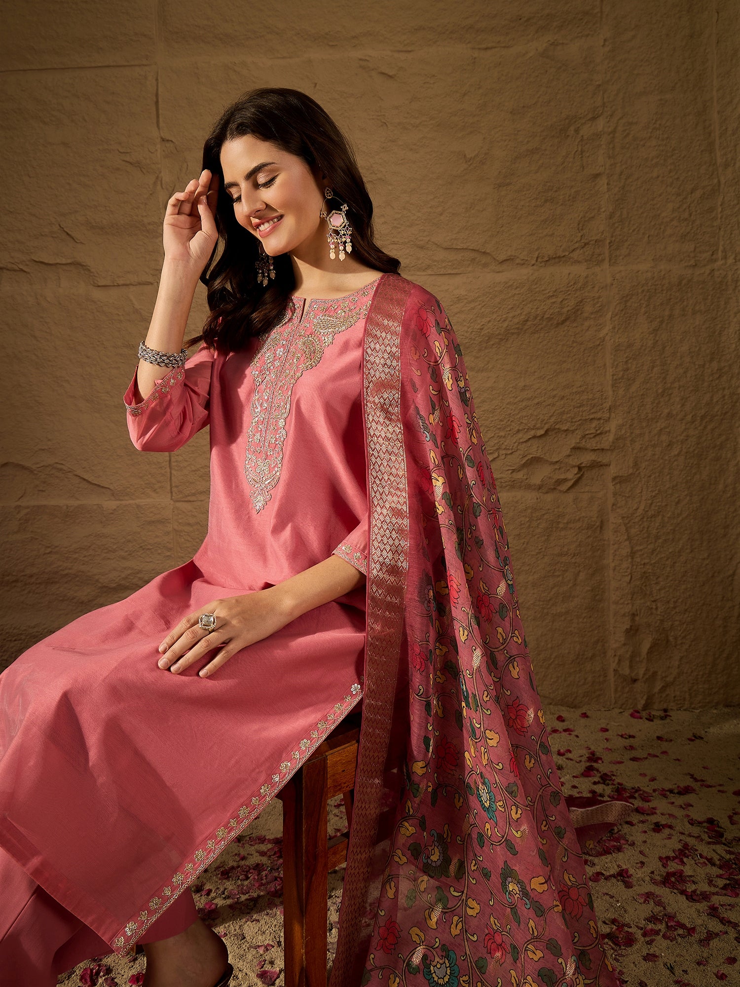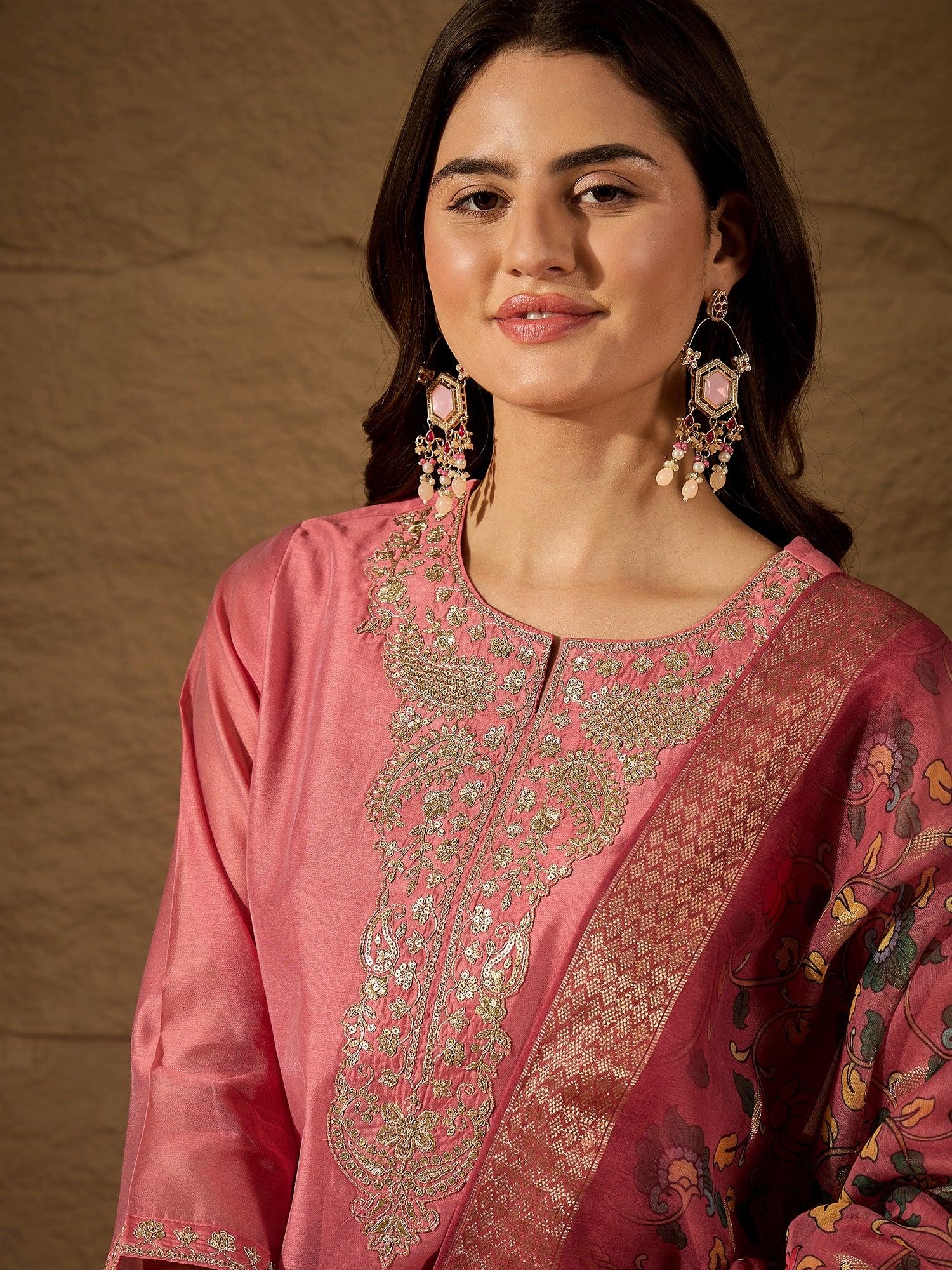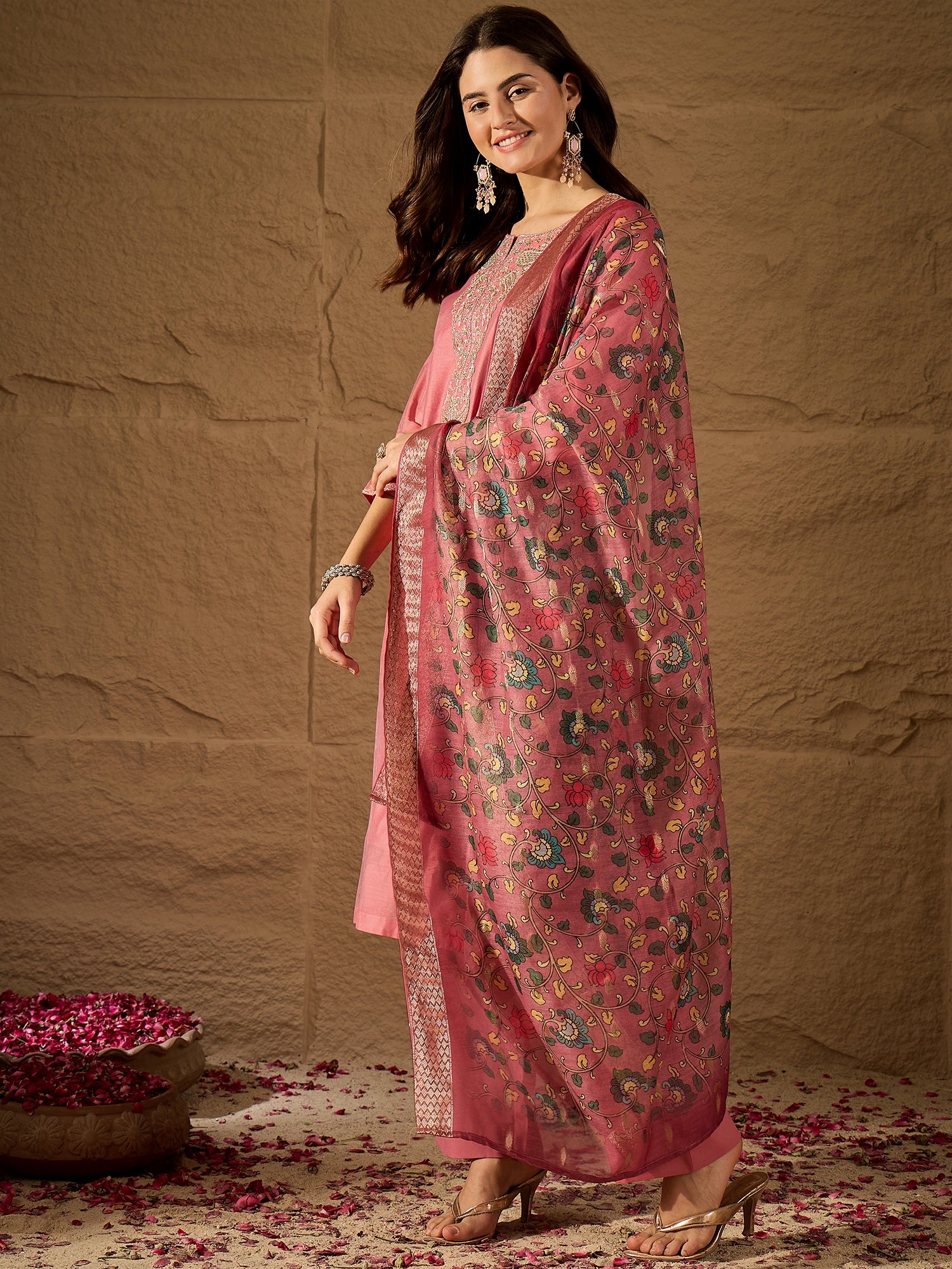 Peach Ethnic Kurta Pant Set with Printed Dupatta