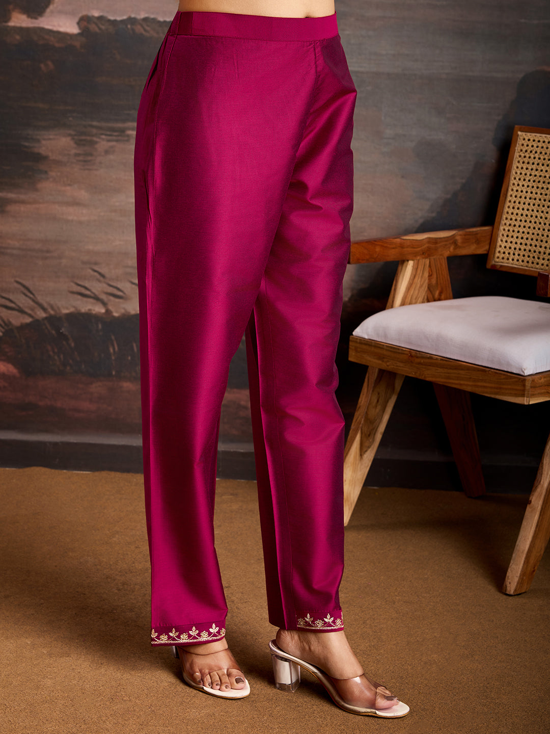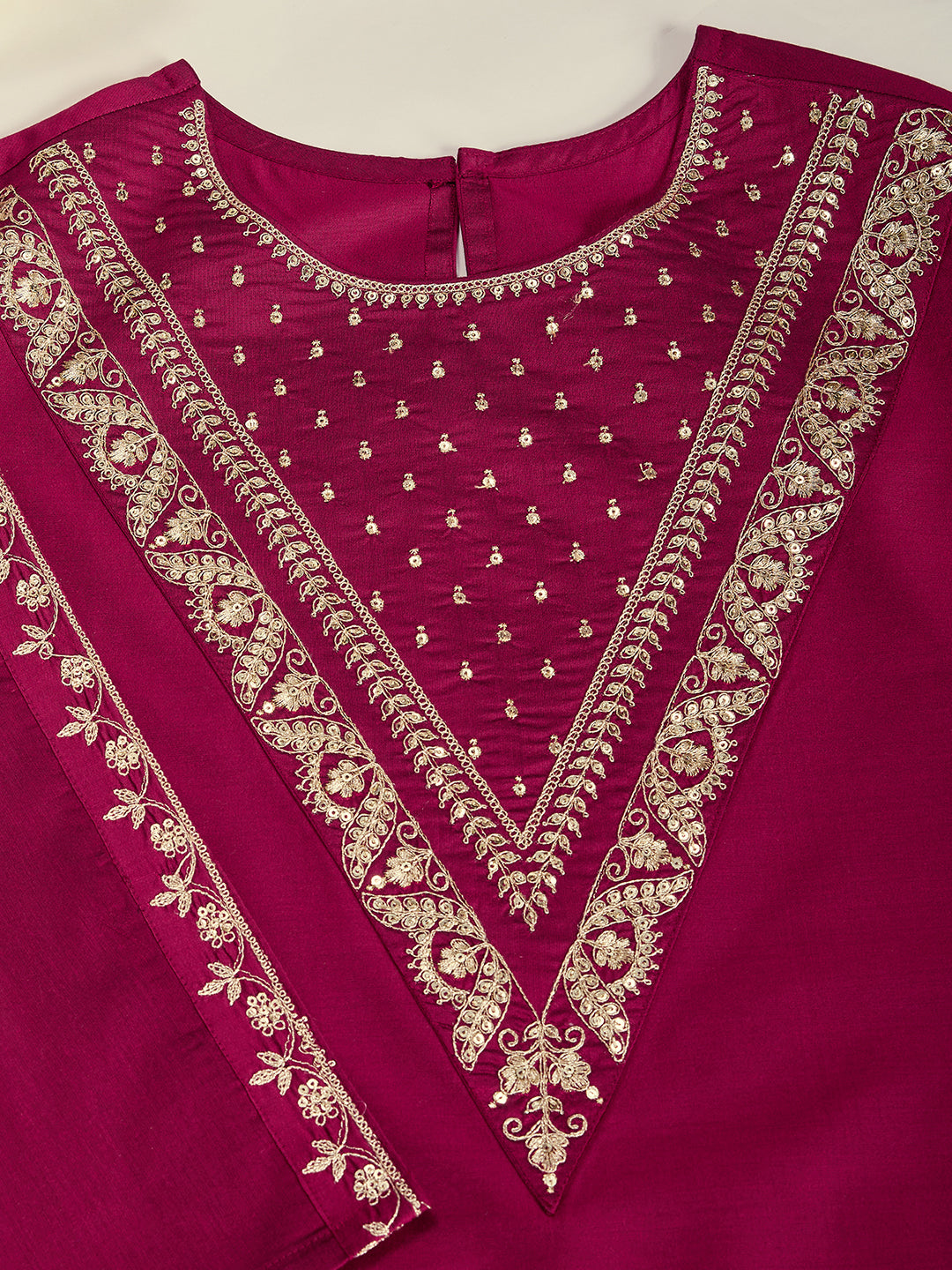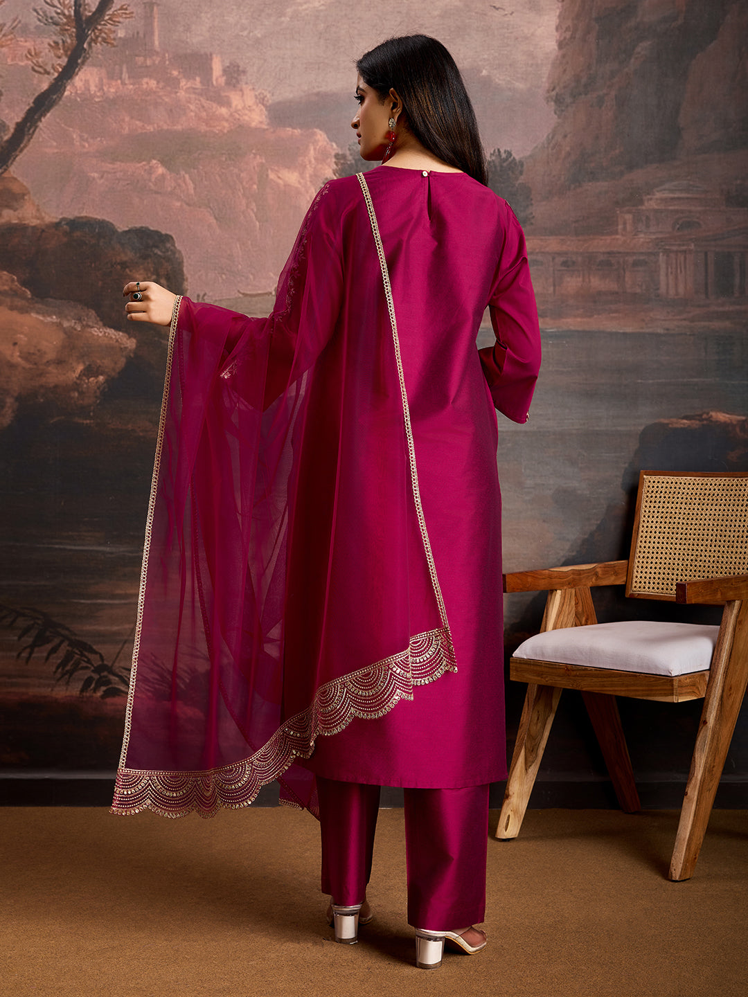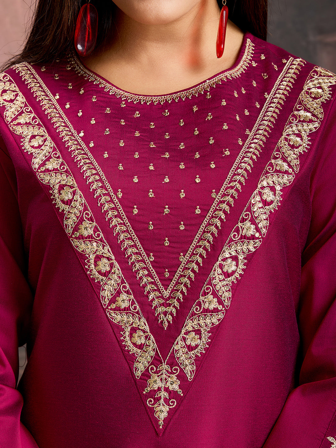 Deep pink Color Silk Blend Embroidered Kurta Set