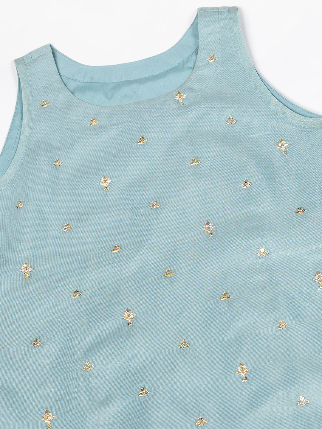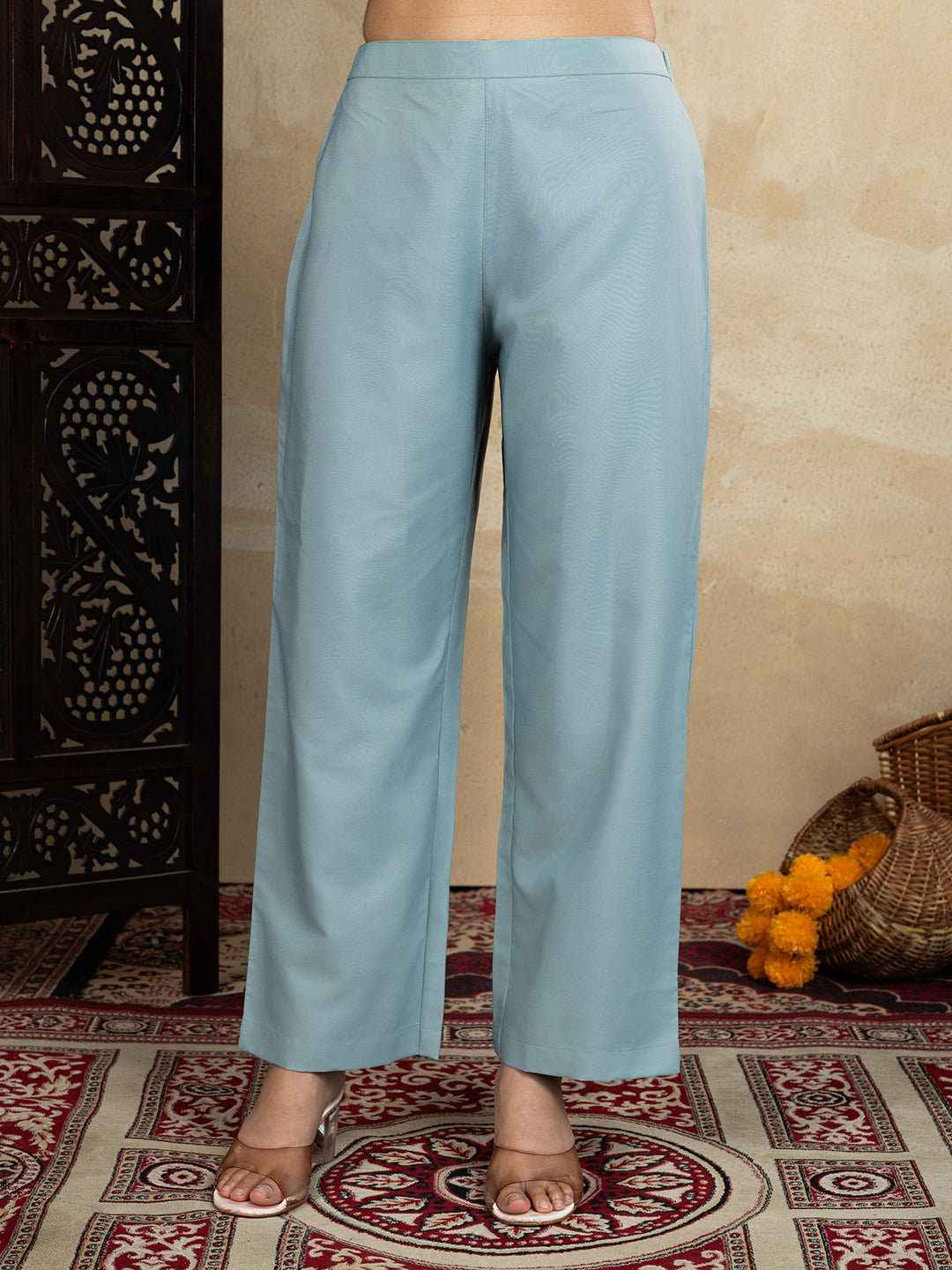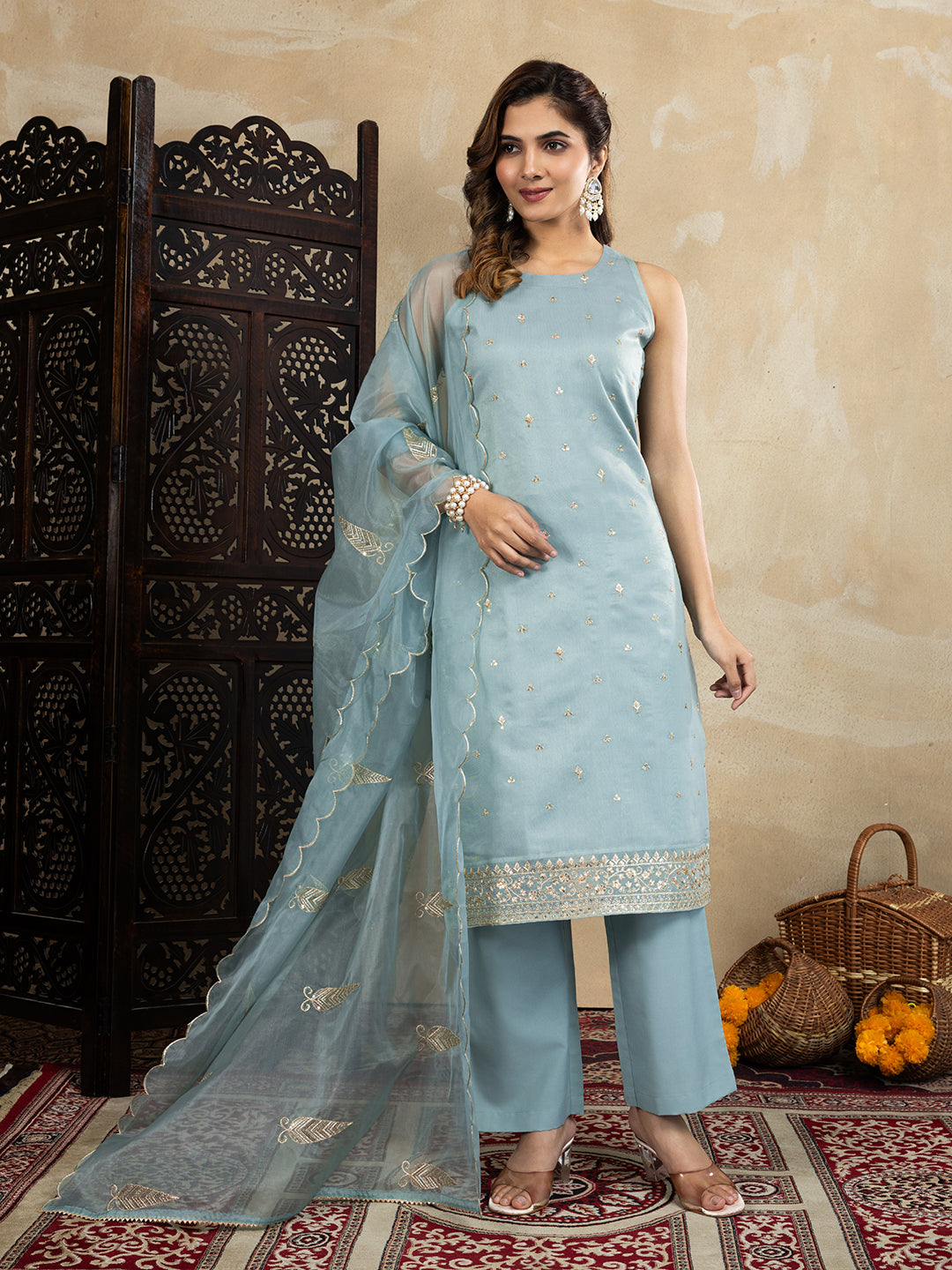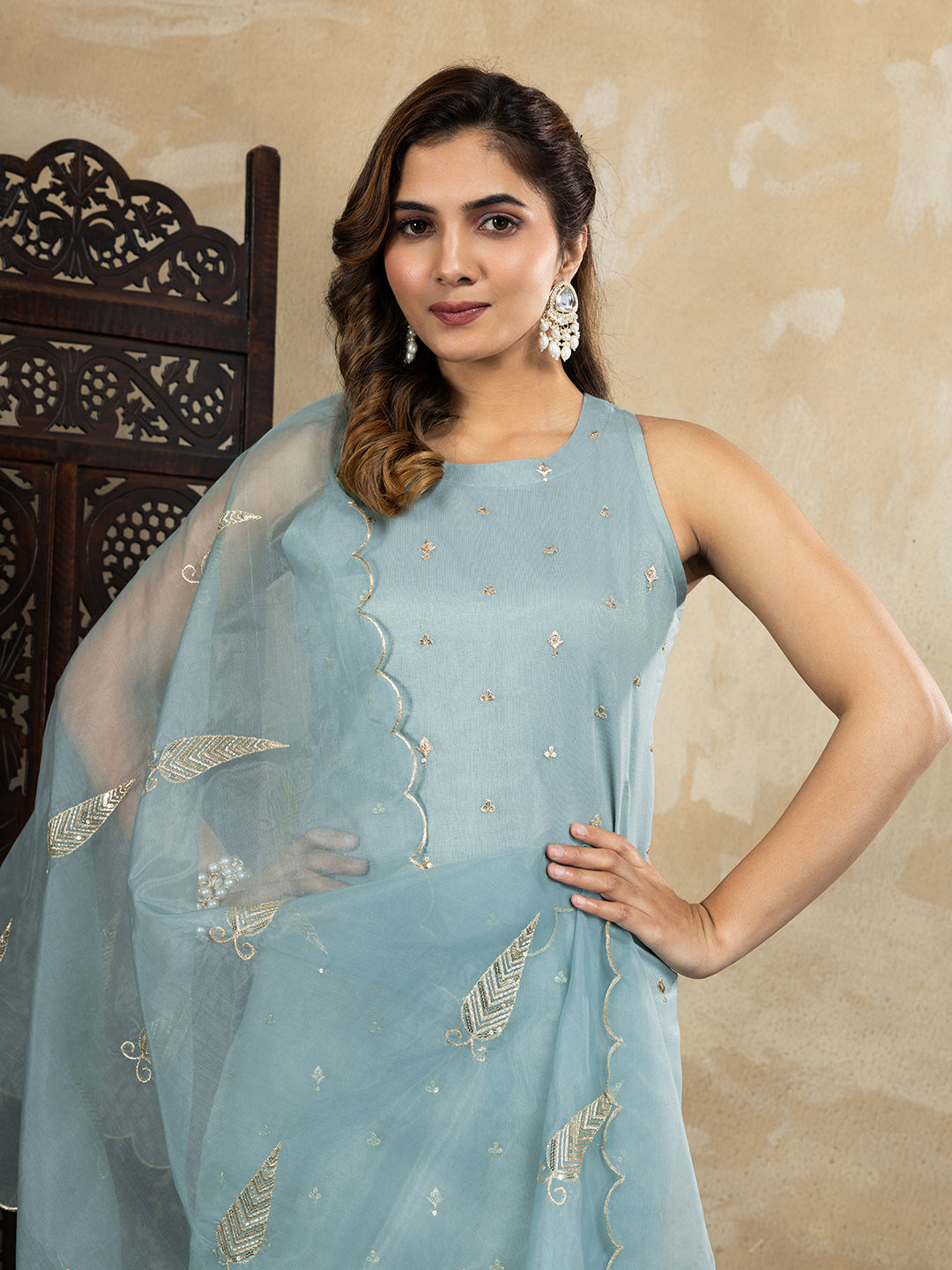 Pastel Sky Blue Embroidered Kurta Set with Organza Dupatta | Elegant Ethnic Outfit for Women